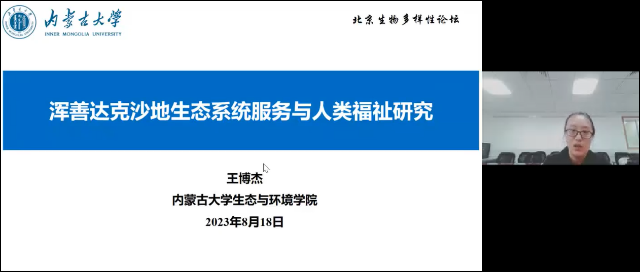 2023年8月18日,北京生物多样性论坛第六期于北京师范大学京师科技大厦顺利举办。本期论坛由北京生物多样性科学研究会监事唐海萍教授组织并主持,主题为“城市生物多样性与生态系统功能”。来自中国科学院地理科学与资源研究所张彪副研究员、内蒙古大学生态与环境学院王博杰副教授和比利时根特大学崔凤琪博士受邀作报告。共有80多人参加。