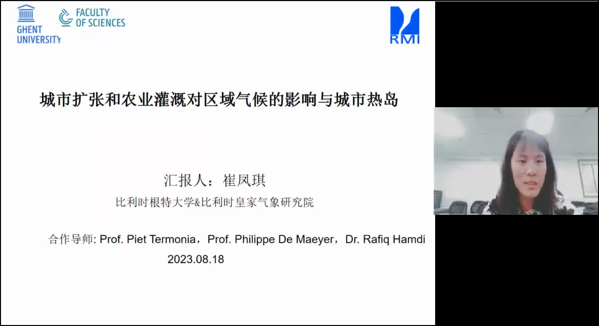 崔凤琪博士分享了基于区域气候模式下城市化和灌溉的单独及交互作用对地表能量平衡和气温降水的影响。以黄淮海地区为例的研究表明,城市化通过增加显热和减少潜热来提高温度,减少对流降水而减少降雨量;灌溉通过增加潜热和减少显热来降低温度,增强了对流和大范围降水;城市化和灌溉还可以通过影响海陆风循环影响比湿。以北京地区为例的研究表明:复合热浪和日间热浪通过增加显热和潜热的城乡差异来增强白天和夜间的城市热岛;夜间热浪通过减少净辐射的城乡差异来抑制白天城市热岛;城市化也带来了最大的复合热浪强度、持续时间和频率的增加。此外,还介绍了巴黎协定下北京夏季城市热岛和热浪,以及未来对缓解城市热岛措施的展望。
