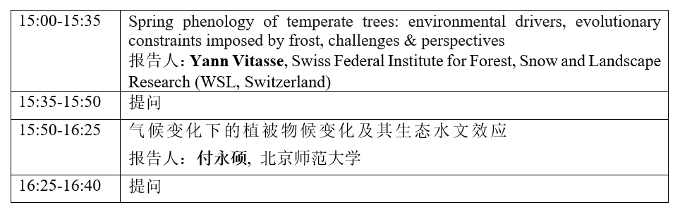 植物物候是气候变化最敏感的生物学指示指标,其变化通过一系列生物地球物理和化学过程反馈生态系统与气候系统。随着遥感、计算机、大数据和人工智能等技术的发展以及气候变化研究的深入,物候对气候变化的响应与反馈机制愈加受到科学研究者的关注。本次报告将简要梳理了植被物候对气候变化的响应机制,分析了中国植被物候变化对陆地生态系统碳、水循环的影响,植被物候变化对局地气候的反馈机制以及通过大气环流对气候系统的影响,并对气候变化下物候学研究做简单展望。