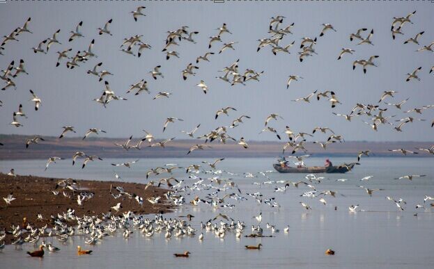 1月8日江西省都昌县鄱阳湖水位7.99米,又是近年来同期最低水位。从去年12月12日在都昌鄱阳湖多宝水域发现117只国家1级保护的东方白鹳群之后,都昌鄱阳湖区的新庙湖,矶山湖,和合黄金嘴,朱袍山水域,周溪的三山,四山,输湖及西源的竹同湖,万户的西湖等湖区都发现了大批小天鹅,灰鹤,白琵鹭等国家2级保护候鸟聚集,取食。1月8日记者随林业保护部门工作人员深入鄱阳湖中心区巡查,又发现大批的灰鹤,小天鹅,赤麻鸭,反嘴鹬,大雁等。
