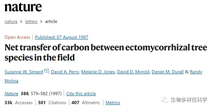 第一兼通讯作者:Suzanne W. Simard (Kamloops Forest Region, British Columbia Ministry of Forests, Canada,加拿大不列颠哥伦比亚省森林部坎卢普斯森林区)